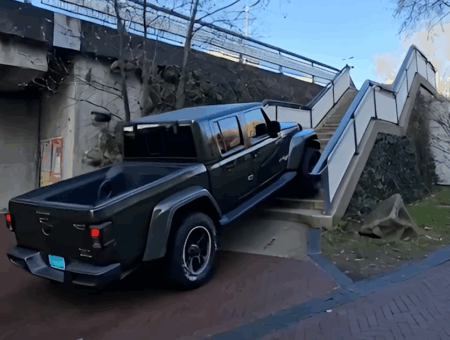 Actualiteit: Jeep vast op trap